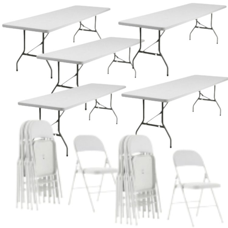 5 Rectangular Tables/ 25 Chairs:White Folding Chair103182637_2119705_21195870000 White chairs